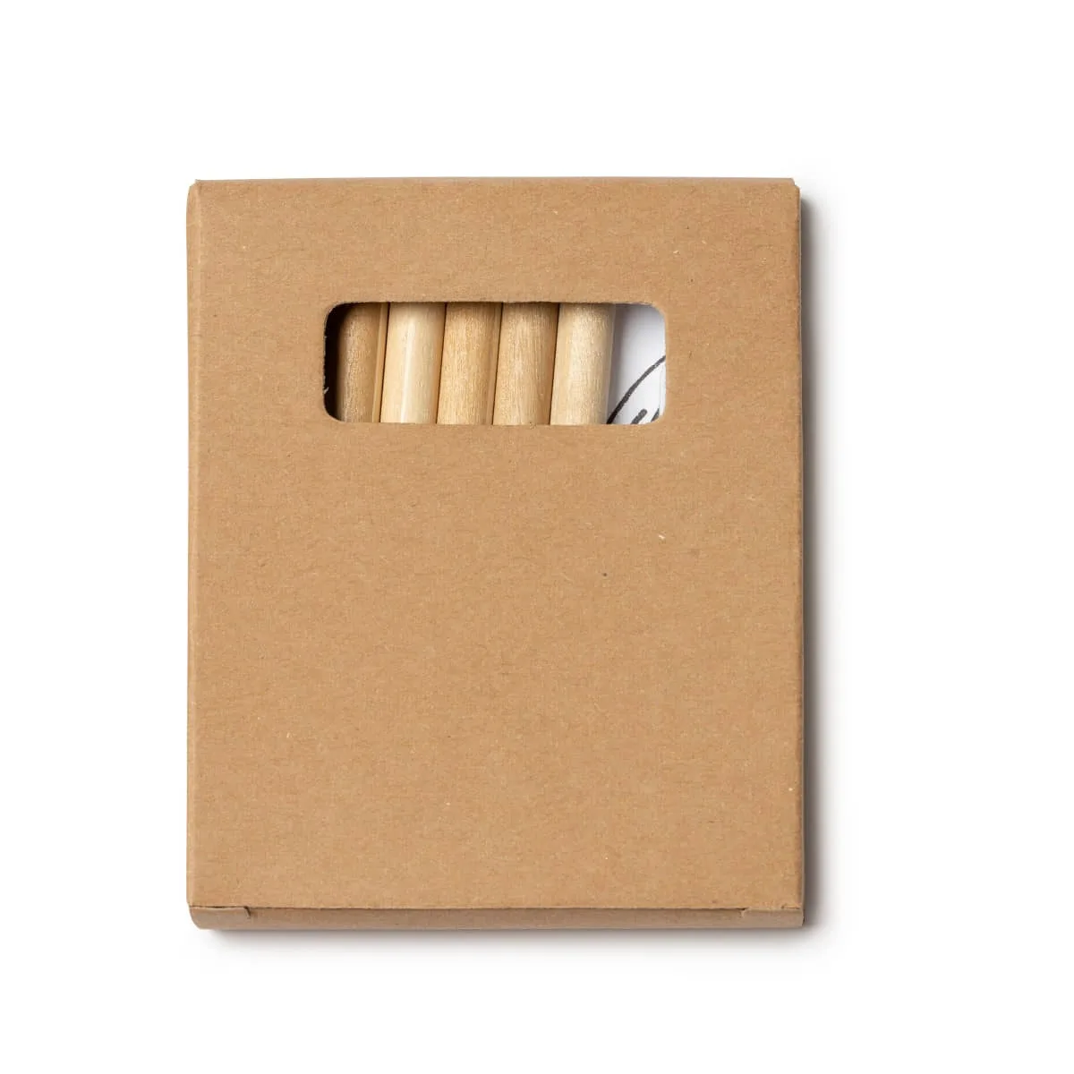 Set infantil para colorear. Incluye bloc con dibujos, 6 lápices de colores y sacapuntas. Presentado en caja de cartón reciclado.