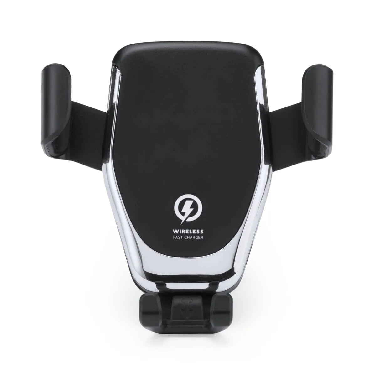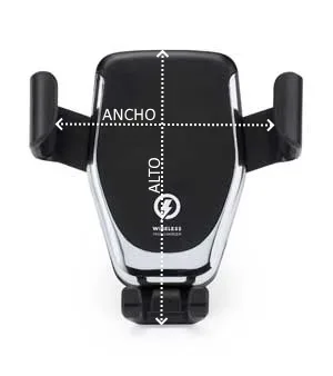 Soporte para smartphone con cargador inalámbrico para coche. Conecte el dispositivo, coloque el móvil sobre él y deje que se cargue. Compatible con modelos con tecnología de carga inalámbrica. Cable y 2 accesorios incluidos. DC5V/1.0A. Presentación en caja diseño.
