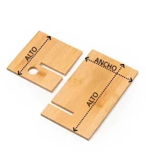 Soporte de bambú natural para móviles. Perfecto soporte para cargar tu Smartphone de forma cómoda. Ranura inferior para cable de carga. Incluye 2 partes de fácil montaje