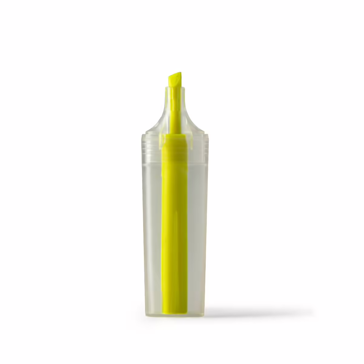 Marcador fluor realizado en plástico reciclado RPET con diseño traslúcido.