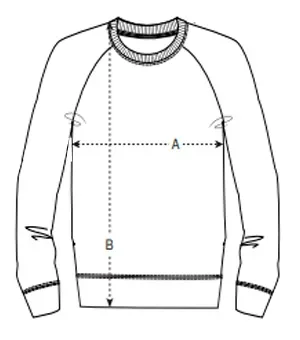 Manga ranglán Cuello en canalé 1×1 Bies interior de punto de jersey en el cuello Media luna interior en tejido principal Canalé 1×1 en puños y bajo Puntada doble en hombros, puños y bajo