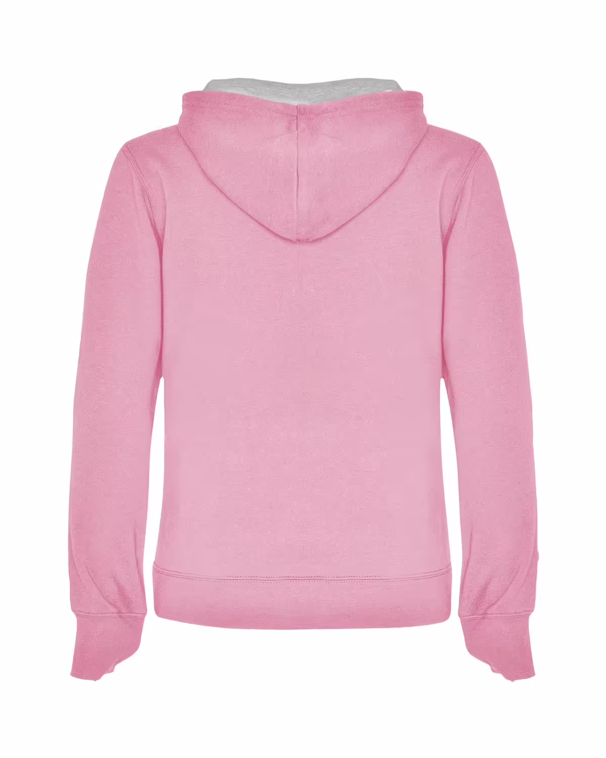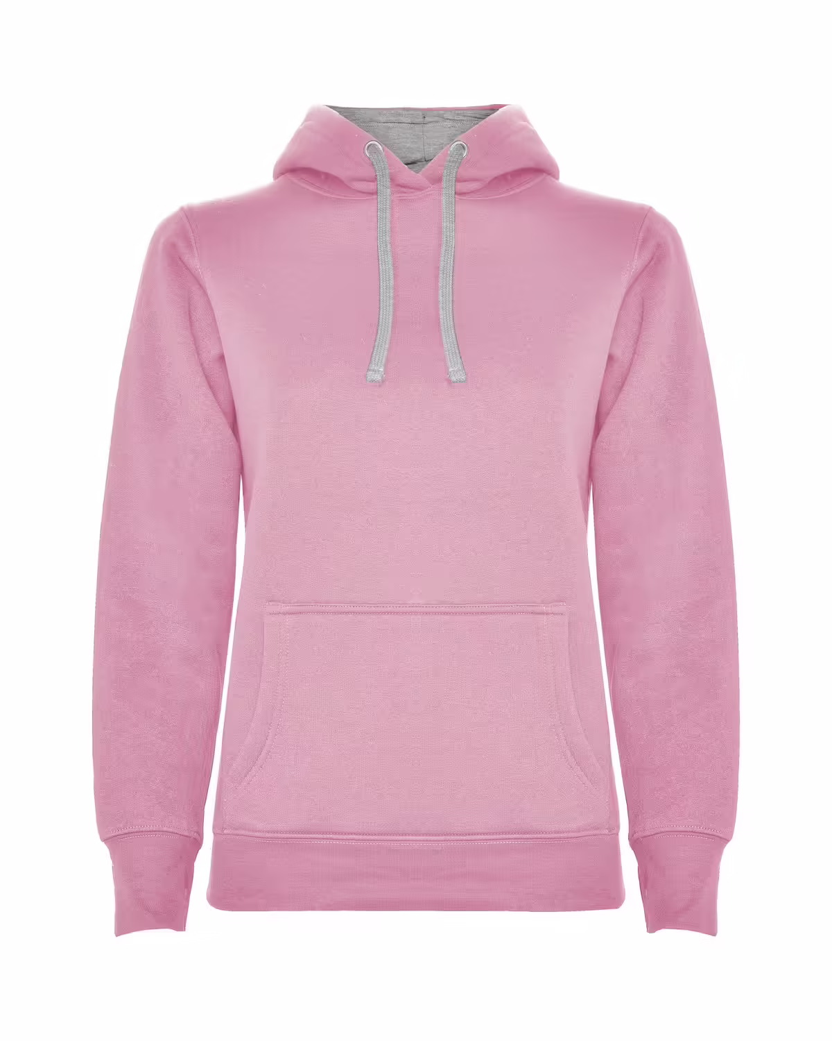 La sudadera entallada de corte femenino  Urban Woman 1068 viene con capucha forrada a contraste y al tono del cordón. Es decir, que si hoy te levantas con ganas de ir a correr y te coges la Urban color rosetón, tu capucha y cordón vienen en púrpura. Y con esos colores, ¡tienes garantizada tu seguridad vial!