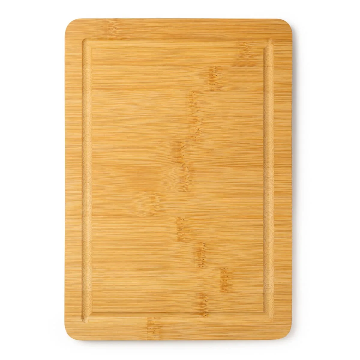 Tabla de cortar de bambú natural en forma rectangular con perfil recoge líquidos.