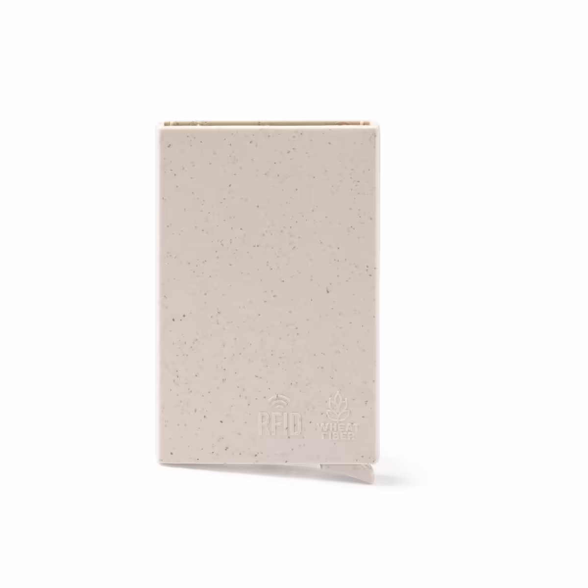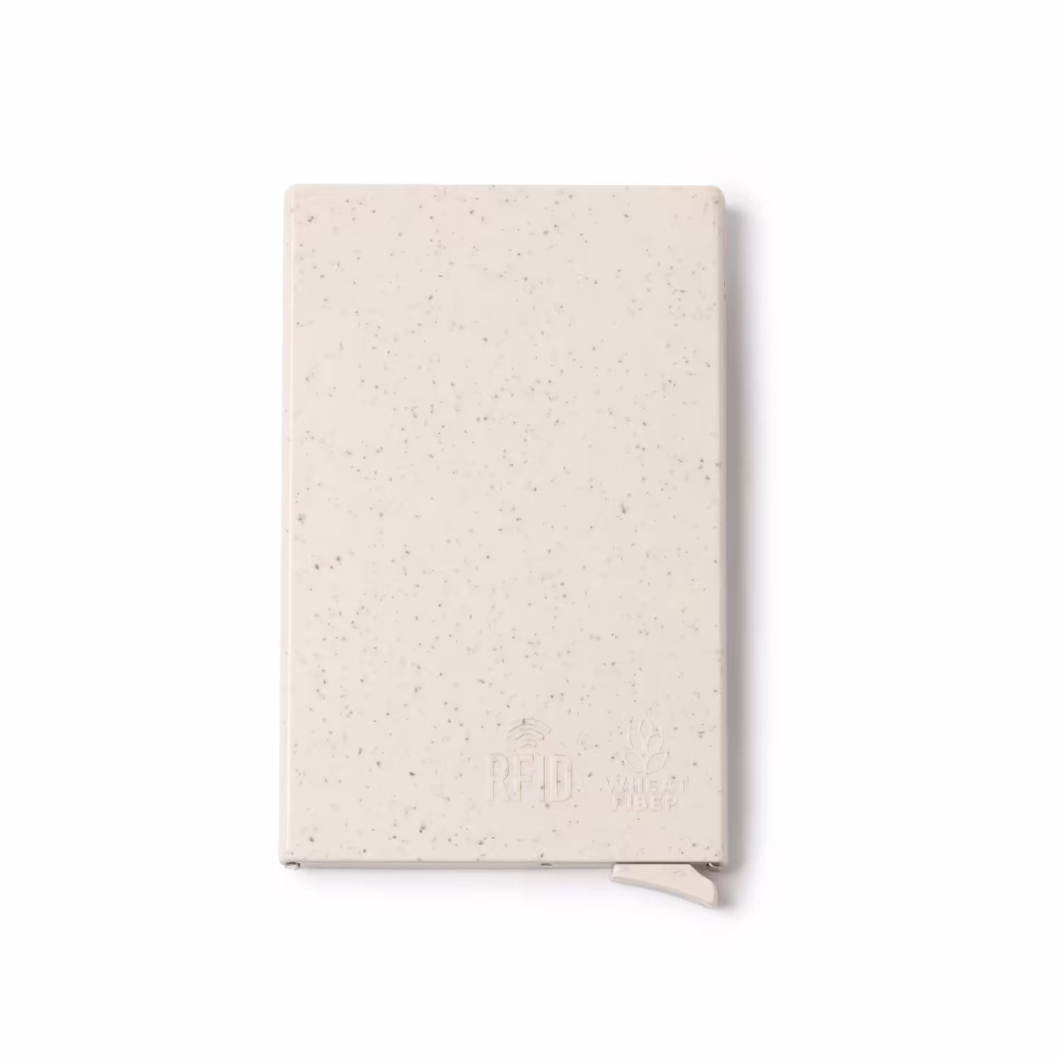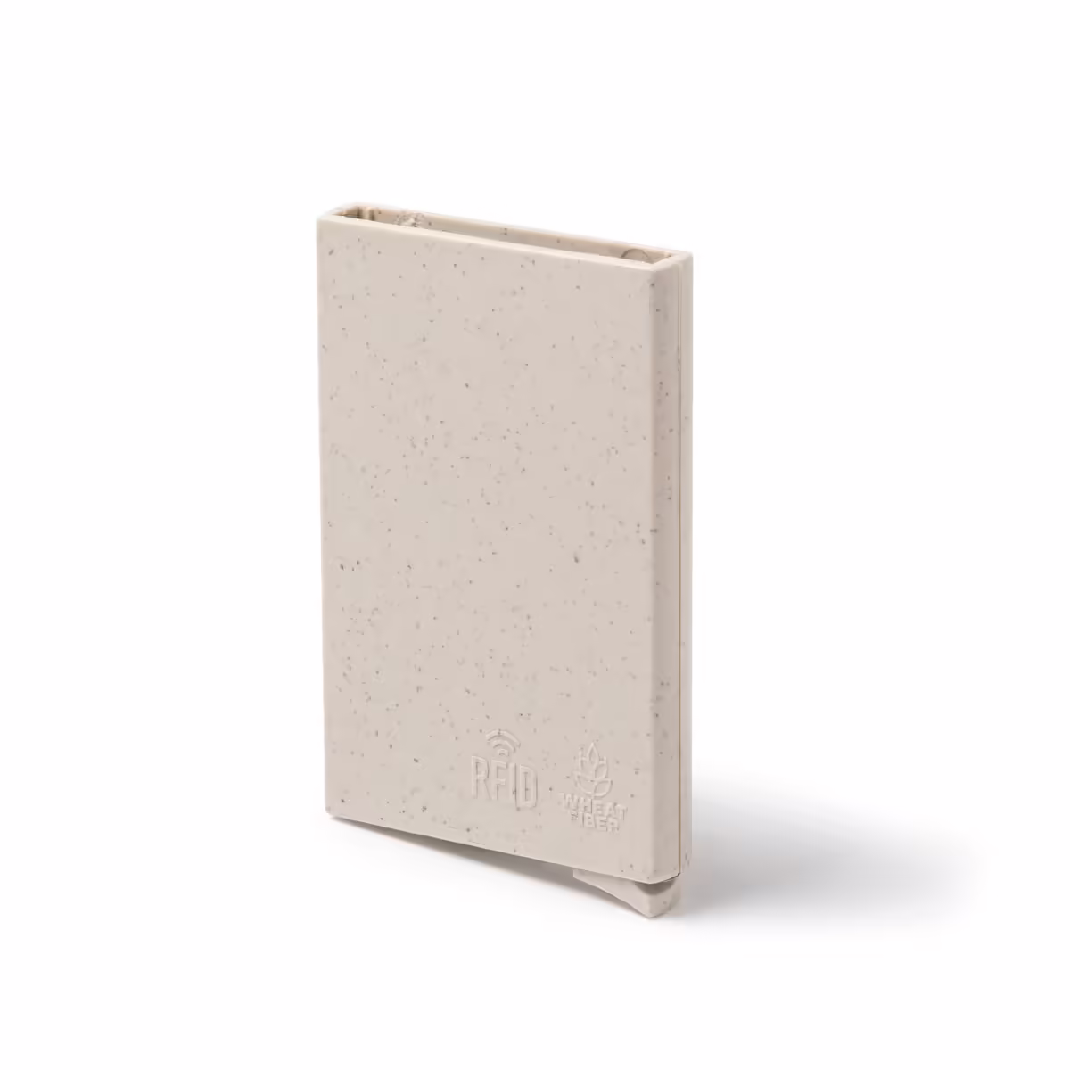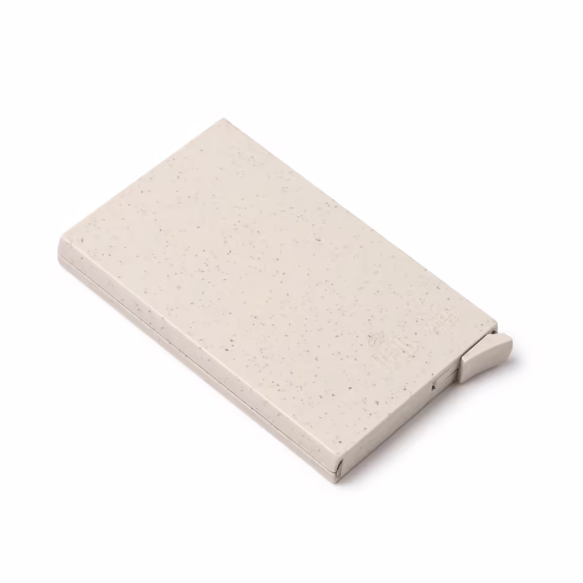 Tarjetero RFID realizado en fibra de trigo. Capacidad hasta 6 tarjetas con mecanismo automático para sacar las tarjetas.