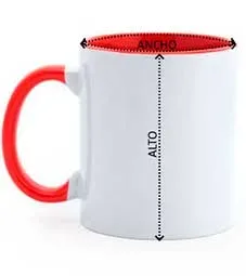 Taza de cerámica de 350ml especial para sublimación. Interior y asa en color. Presentación en caja blanca.
