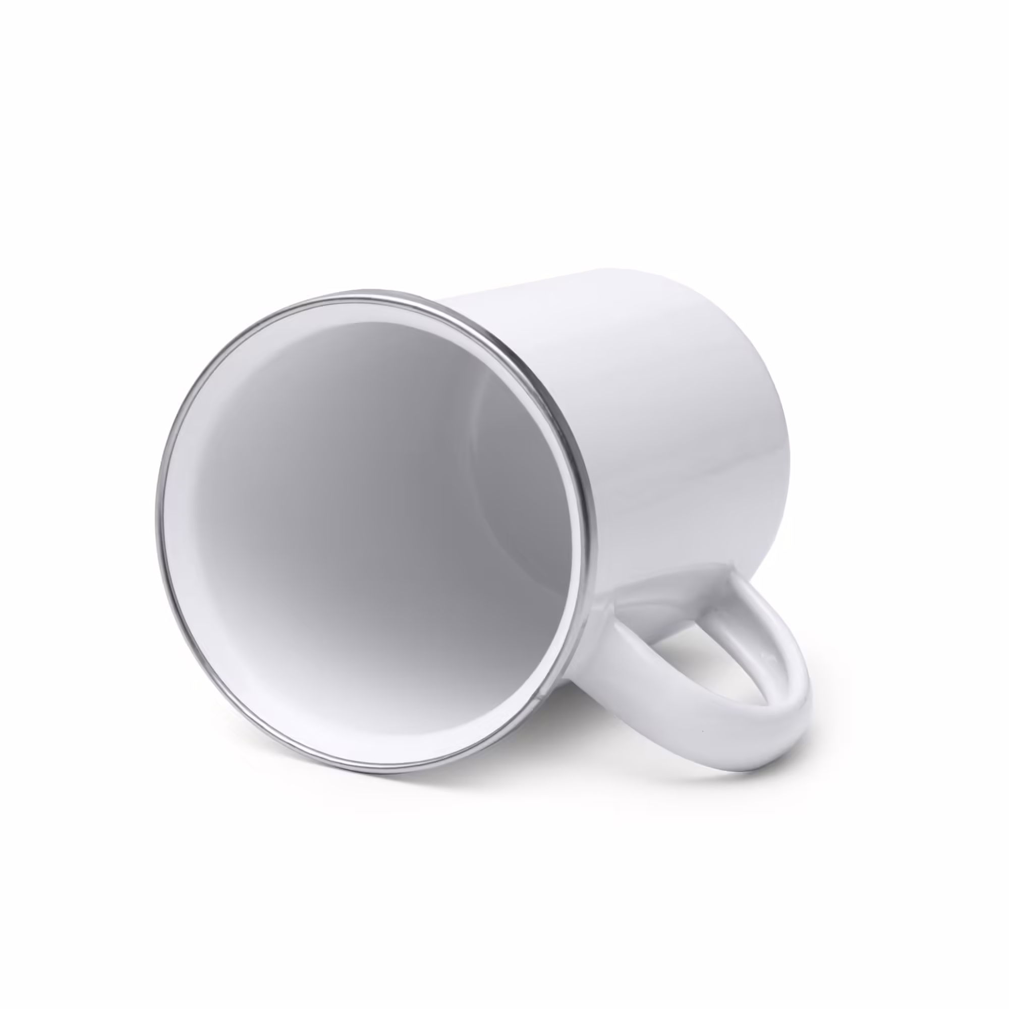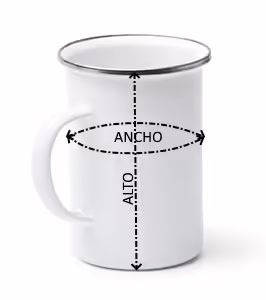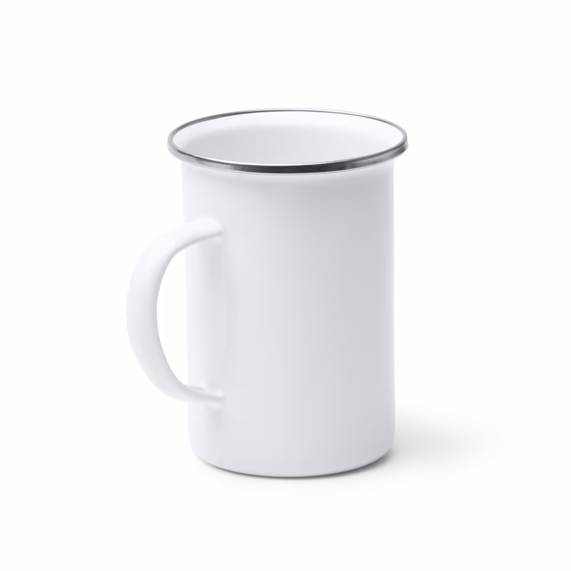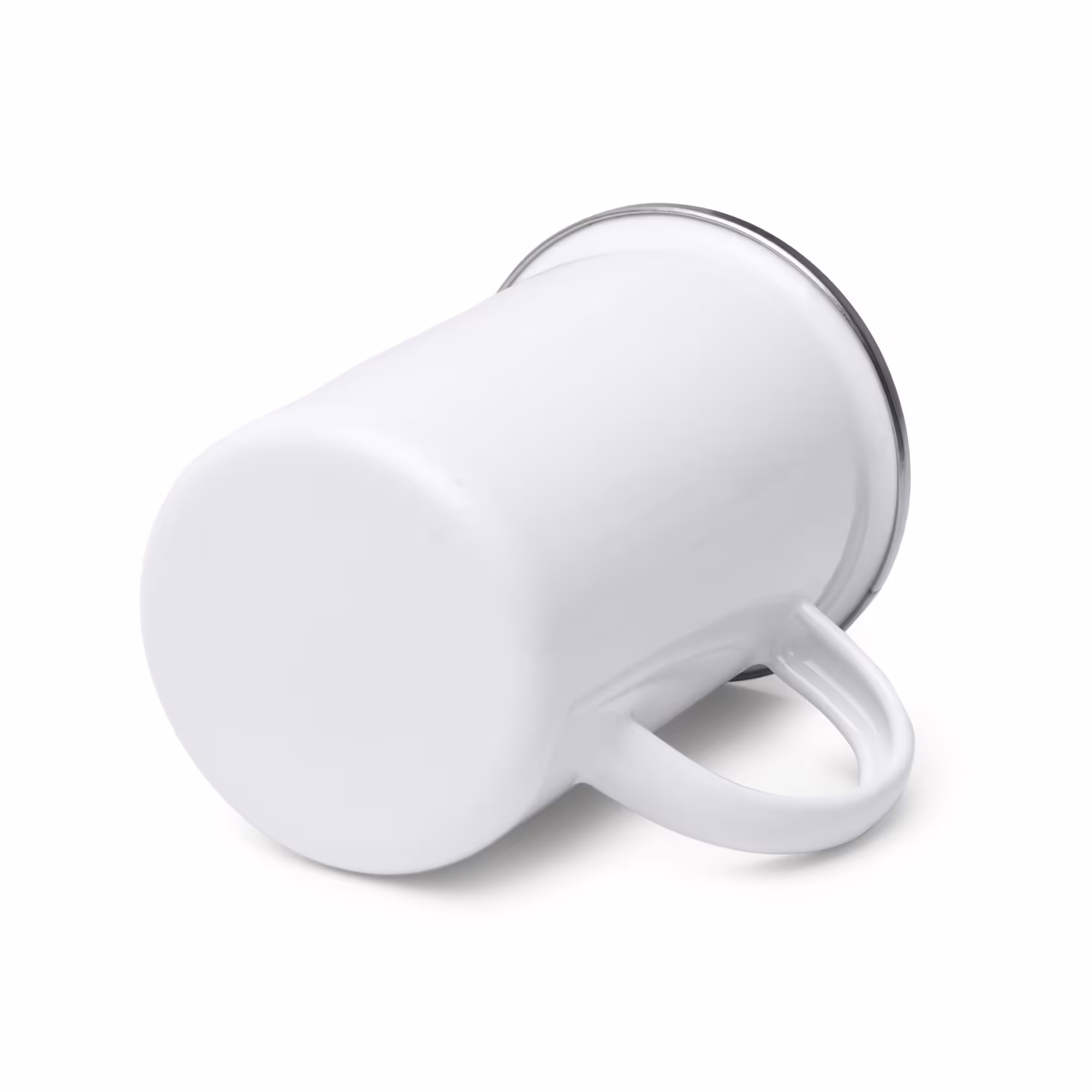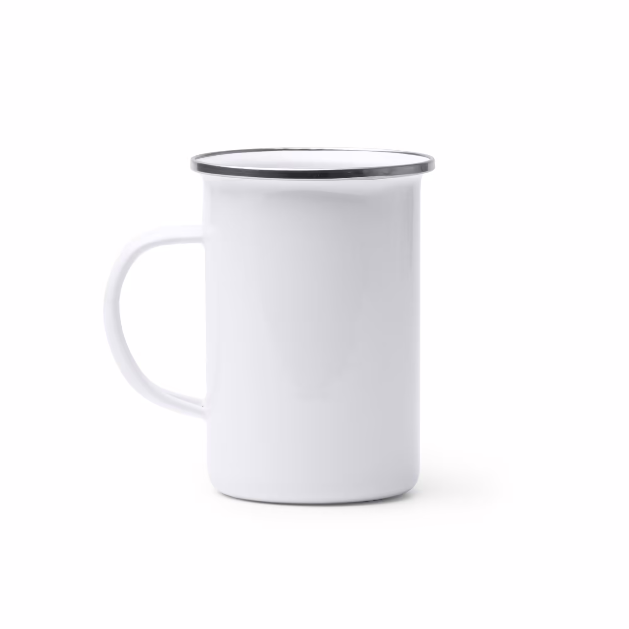 Taza alta metálica esmaltada con recubrimiento especial para sublimación. Capacidad 380 ml.