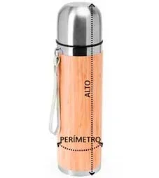 Termo de acero 304 doble pared y bambú. Capacidad 420 ml. Incluye cinta para transporte. Un termo elegante y completo.