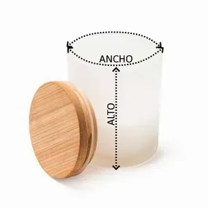 Vela aromática en vaso de cristal translucido con tapa de bambú. Aroma vainilla.