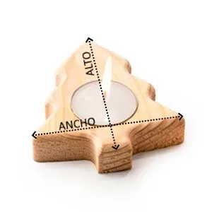Vela en soporte de madera con diseños navideños (estrella y árbol).